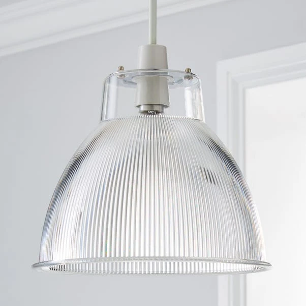 The Alanya east fit pendant has a dome shape shade, with chrome detail and ribbed texture. Made from clear plastic this will give an modern look to your home.