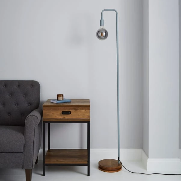 Stylishly designed, this LED floor lamp features a matt grey stand with natural rubberwood base and is supplied with a globe shaped 7W LED E27 filament bulb. This simplistic floor lamp is operated by an inline foot switch for convenience.