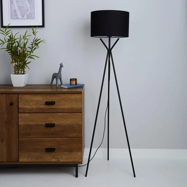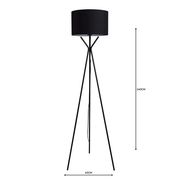 Designed with a tripod base, this floor lamp features a cotton blend shade with a matt black base and a cable length of 150cm.
