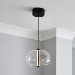The Elements Bjork Pendant Ceiling Light features a clear glass pebble shaped head with a black cable, perfect for adding a modern look into your home. 1 x Integrated LED bulb is included within the Elements Bjork Pendant Ceiling Fitting. Matching family items are available in the Elements Bjork range.