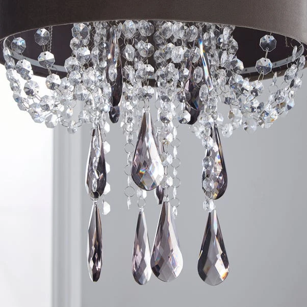 This grey velvet shade features a beautiful cascading acrylic drop design with a clear smoke finish and will connect easily to existing lamp holders.