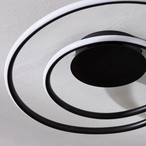 Stylish and modern for any room in your home, even your bathroom, this swirl light fitting is designed in a sleek black colourway. With an integrated energy efficient LED light, your room will be lit up perfect for the dull and dark days. Other matching family items are available.