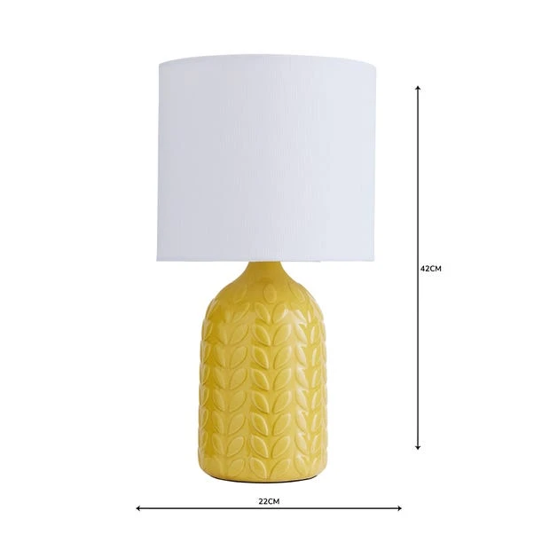 Our Magda table lamp has a ceramic textured leaf finish in a lemon yellow. With an inline switch and a cable length of 120cm.