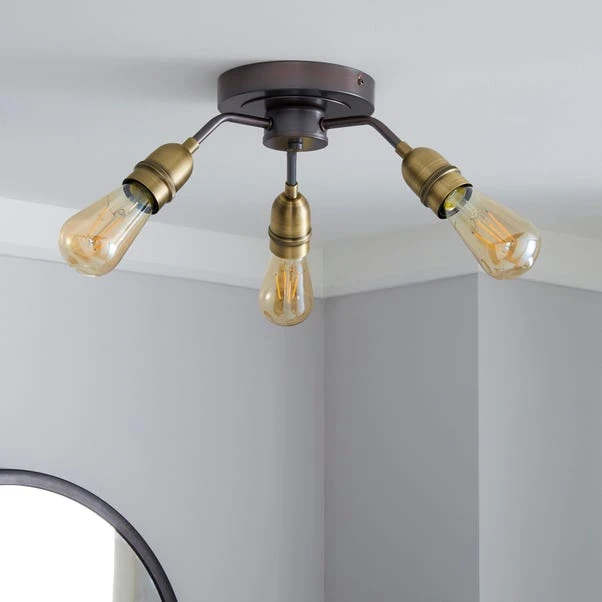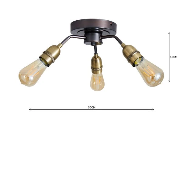 Stylishly fashioned with 3 lights, this light fitting features bronze, antique bulb caps and amber bulbs, perfect for adding a contemporary touch to your home.