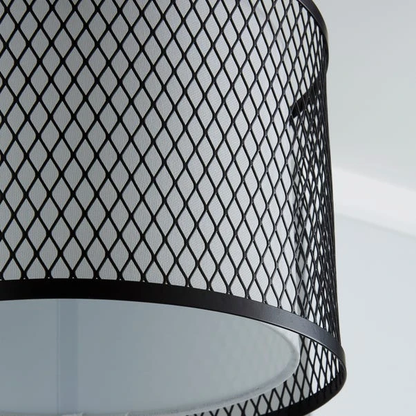 With a matt black mesh metal outer shade, and an inner cotton shade, this modern 2 shade design will be the finishing touch to your room.