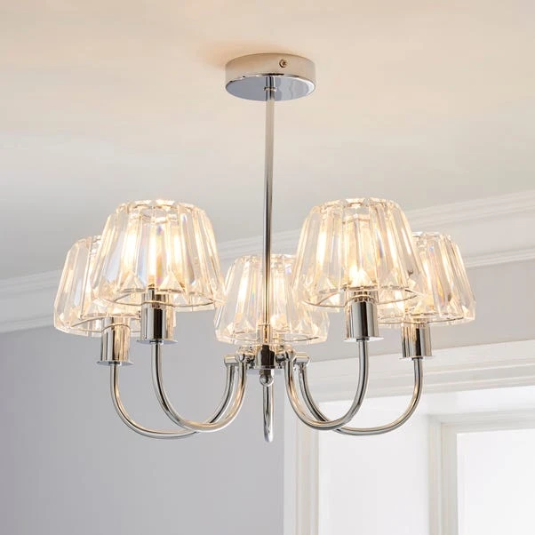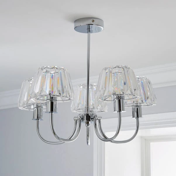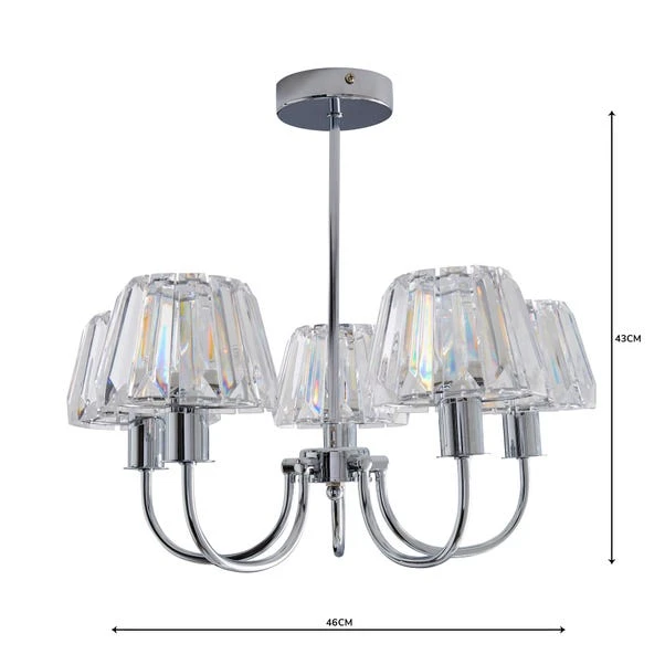 Add glamour to your home with this 5 arm ceiling light. Complete with a chrome finish and modern prism finished shades.
