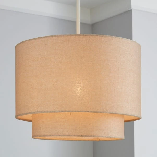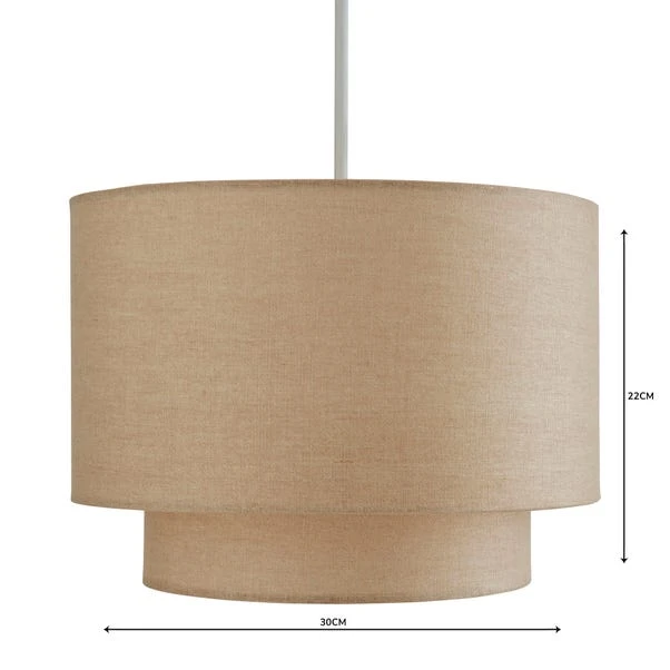 Featuring a contemporary two tier shape, this natural coloured light shade offers a textured linen shade and modern style.