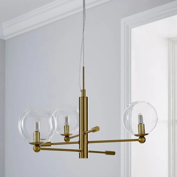 In a antique brass finish and clear glass shades, this 3 light fitting will be a statement piece in your home.