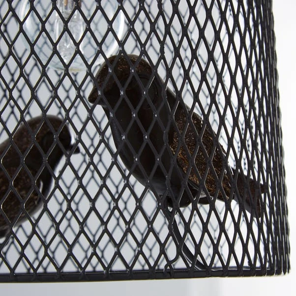 Stylishly fashioned in a dark charcoal grey colour, this stunning pendant features metal mesh design with two intricately crafted birds inside.